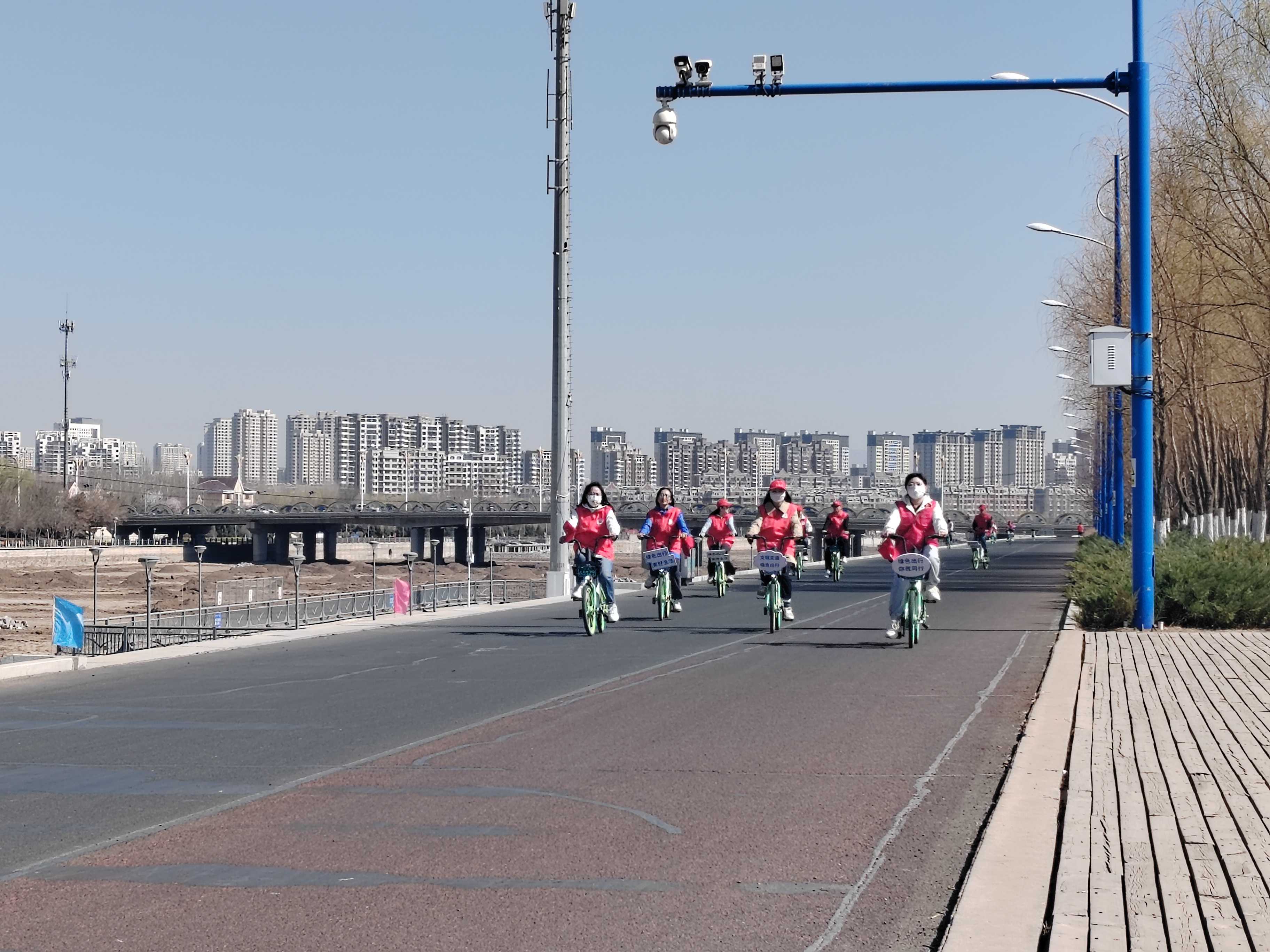 之后志愿者们集体进行了助力自行车骑行活动,通过“走出办公室,走向大自然”的方式,用心感受“春色满园关不住”,用情体会“绿色出行正当时”。