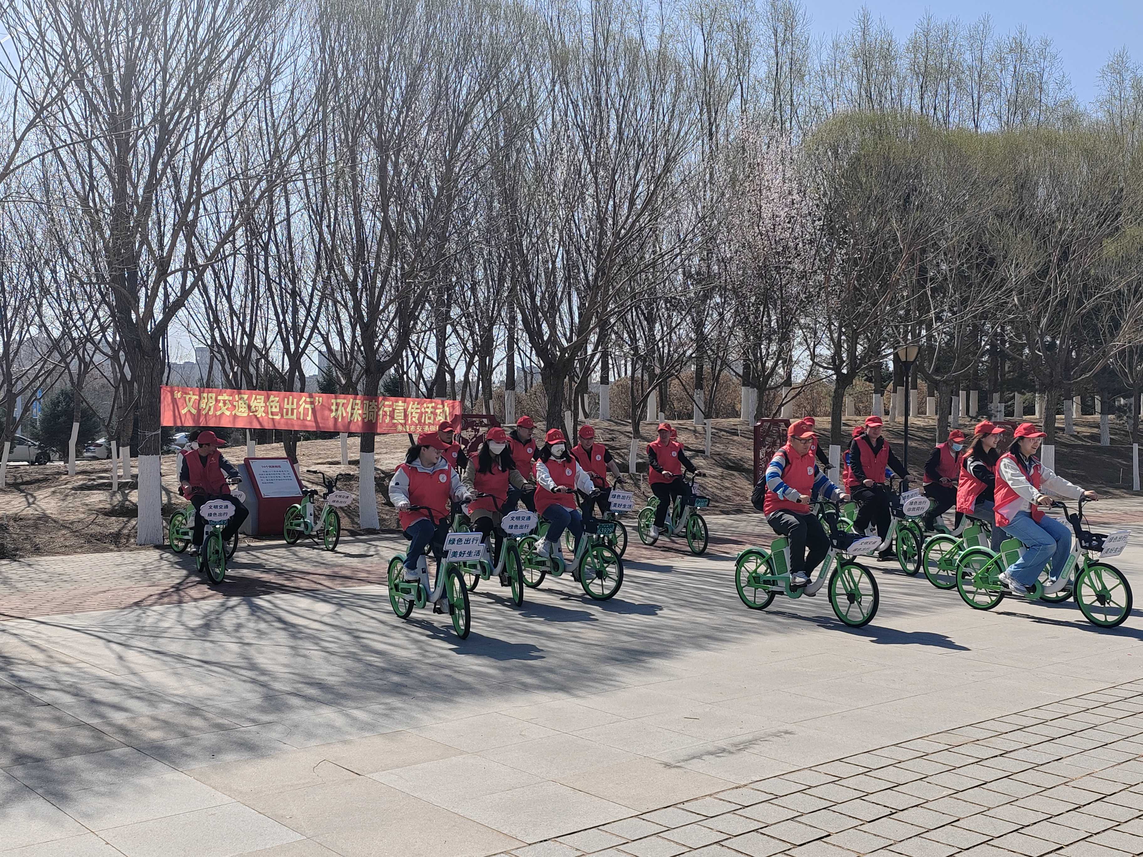 春风送暖、万物复苏。红山区铸牢中华民族共同体意识主题公园迎来了20余名身穿红色马甲,骑着“小绿”的使者。