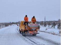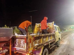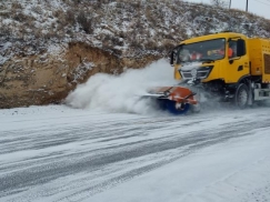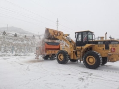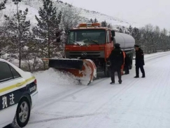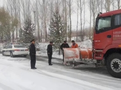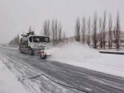 接到气象部门发布的天气预警后,县交通运输局立即展开部署,调配车辆、人员、物资,加强各路段巡查。14日降雪发生后,管护中心各养护道班按照“一路一策”的保畅实施方案,根据道路冰雪情况,通过不间断巡查清雪的方式对管养道路进行除雪打冰,“截止15日早上8时,我们已累计投入清雪机械47台,抢通保畅人员105人,撒铺融雪剂103吨,目前对国省干线已经来回清了5遍,还在有序进行中”,国省公路养护股股长邵晓龙说到。