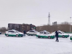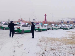 G306线南工业园区处加气站,出租车师傅们正在排着长队等着加气“司机师傅,雪天路滑,您注意和前车保持安全车距”执法大队教导员郭政和执法人员对司机们一一叮嘱。