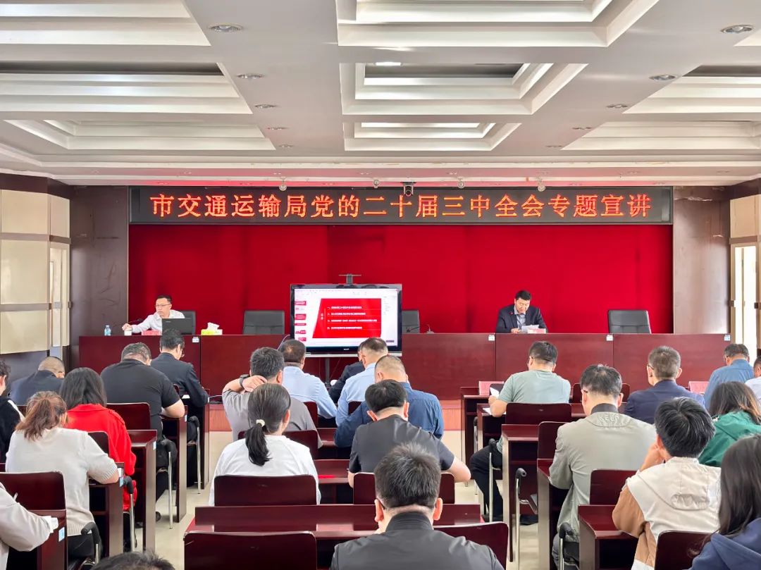 9月24日,市交通运输局举办党的二十届三中全会精神专题宣讲报告会。学习贯彻党的二十届三中全会精神市委宣讲团成员、市人大常委会机关党组成员、副秘书长杨志辉作专题宣讲报告。市交通运输局党组书记、局长李占杰主持会议。