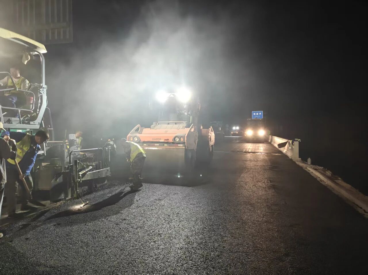 国道207线养护工程部分段落应用无人摊压集群施工技术开展沥青路面摊铺作业。